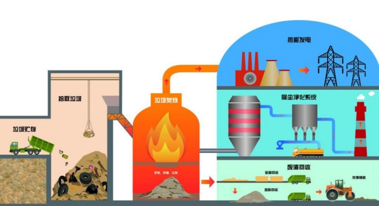 農(nóng)村生活垃圾中的可燃成分較多,很多時(shí)候人們會(huì)選擇一種一勞永逸的辦法——焚燒垃圾。垃圾焚燒產(chǎn)生的熱值有一定的利用價(jià)值,將固體垃圾廢料置于封閉的爐內(nèi)焚燒,在高溫條件下,這些物質(zhì)被破壞分解,形成性質(zhì)穩(wěn)定的廢渣。這些廢渣可以作為廢料還田。這種處理技術(shù)對(duì)固體垃圾的處理效率較高,彌補(bǔ)了填埋技術(shù)的一些不足,實(shí)現(xiàn)了減量化和無害化。但焚燒垃圾會(huì)產(chǎn)生大量復(fù)雜的有害氣體,這些氣體會(huì)隨著風(fēng)流飄散,擴(kuò)大污染范圍。