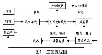 好氧發(fā)酵是實現(xiàn)污泥資源化利用的一種重要途徑。其優(yōu)點是投資少、工藝簡單、易操作、運行成本相對較低,但常規(guī)工藝臭味大、操作環(huán)境差,并且堆肥后農(nóng)用或其他土地利用受污泥中重金屬、有機(jī)物及N、P含量的限制。